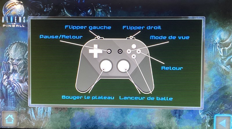 Notez pour commencer que le jeu requiert un contrôleur. Avec la manette Freebox, par exemple, le bouton 3 sert à lancer la bille au début de la partie, tandis que les gâchettes permettent de contrôler les flippers gauche et droit. Le bouton 4 donne accès à différentes vues, plus ou moins rapprochées selon votre préférence. Quant au bouton Select, il permet la mise en pause. Les commandes sont rappelées dans la section Commandes des paramètres.