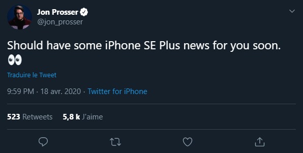 En effet, d’après le blogueur Jon Posser, dont la réputation n’est plus à faire au sujet des informations sur la marque à la Pomme, la firme aurait dans ses cartons un iPhone SE Plus, une version plus imposante du dernier iPhone d’entrée de gamme, qui remplace désormais l’iPhone 8 sur sa boutique en ligne. Le twitto a posté un message sur le réseau social précisant qu’il aurait prochainement plus d’informations concernant ce prochain iPhone SE Plus.