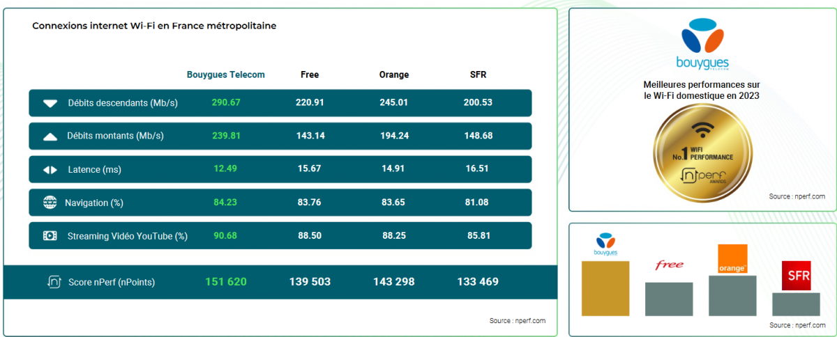 En plus de son baromètre des connexions fixes pour l’année précédente, nPerf a révélé son nouveau baromètre du WiFi en France en 2023 et Bouygues Telecom est à nouveau leader.