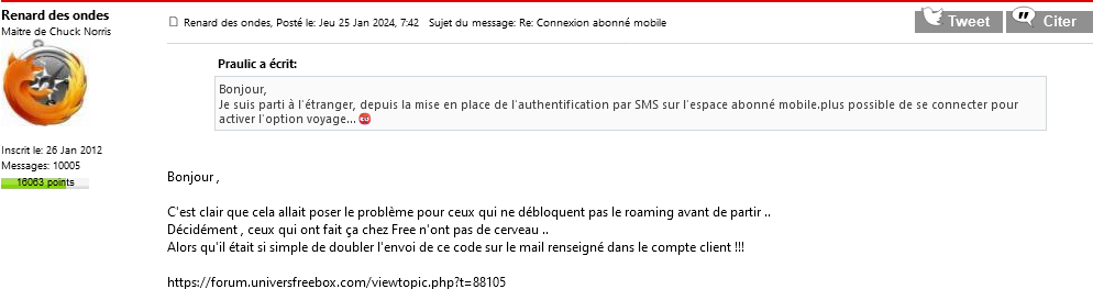 Plusieurs solutions se dégagent dans la tête des abonnés Free Mobile, notamment au moins la possibilité de recevoir ce code par SMS et par mail, simultanément, qui pourrait donc résoudre certains soucis. Busyspider, bien connu de la communauté Free, a ainsi posté sur X pour demander à l’opérateur de revoir sa copie en intégrant au moins l’envoi par mail en plus.