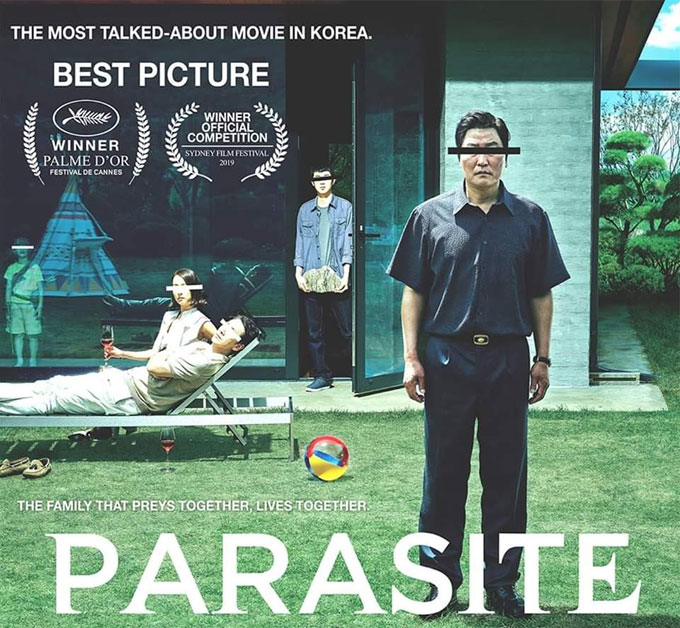 Synopsis : Toute la famille de Ki-taek est au chômage, et s’intéresse fortement au train de vie de la richissime famille Park. Un jour, leur fils réussit à se faire recommander pour donner des cours particuliers d’anglais chez les Park. C’est le début d’un engrenage incontrôlable, dont personne ne sortira véritablement indemne…