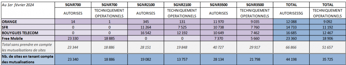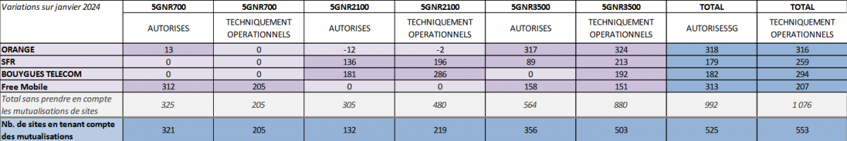 L’opérateur historique démarre l’année avec un déploiement assez intense pour la 5G, avec 324 nouvelles activations dans la bandes 3.5 GHz, contre 213 chez SFR, 192 chez Bouygues Telecomp et seulement 151 chez Free Mobile. Orange reste donc leader incontesté sur cette bande “reine” de la 5G avec 9035 sites actifs contre 5660 chez Free, 7760 chez SFR et 7462 chez Bouygues Telecom.