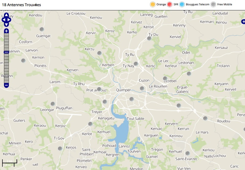 Découvrez la répartition des antennes mobiles Free 3G/4G sur Quimper dans le département du Finistère