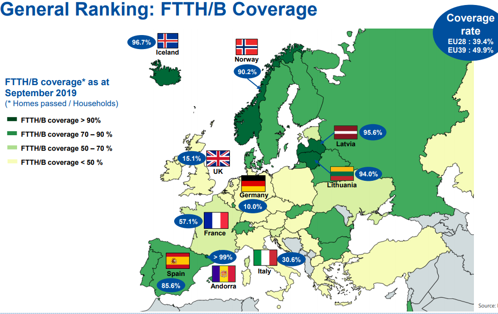 Les nouvelles données du Panorama 2020 du marché des fibres ont été présentées ce week end par le FTTH Council Europe. Il révèle une nette amélioration de la France.