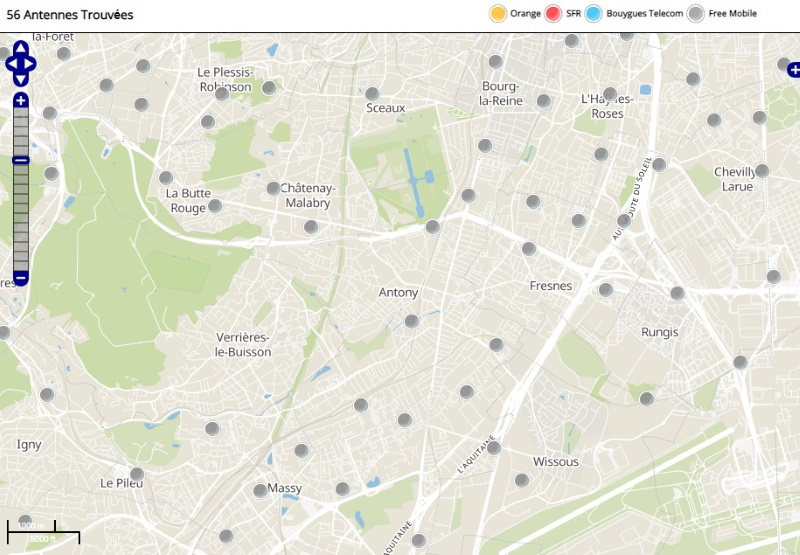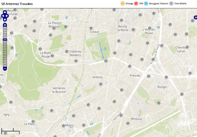 Free a également implanté 7 antennes mobiles 3G dans la ville de Antony (antennes non-actives incluses).
