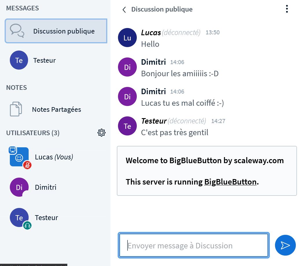 Le hic de cette plateforme est qu’elle est pensée pour une utilisation sur ordinateur. Il est bien sûr possible de rejoindre une salle depuis son smartphone, une page s’ouvrira sur votre navigateur directement. Mais dès que vous quittez la dite page, vous serez sorti de la conversation, l’accès à certaines fonctionnalités est plus compliquée… Mais c’est un problème assez mineur, au vu de l’utilisation prévue de BigBlueButton.