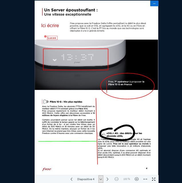 La première chose mise en avant est la possibilité d’intégrer une présentation sous forme de pdf, que vous et les participants peuvent modifier à tout moment.