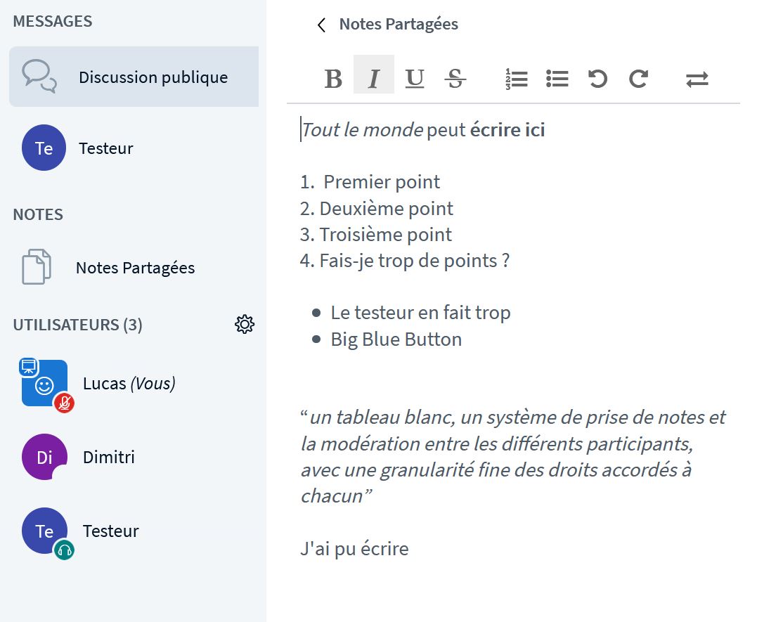Autre fonctionnalité pratique. Il est possible de créer des notes partagées, c’est à dire de créer un fichier texte qui permet de réunir tous les points précis d’une réunion par exemple.