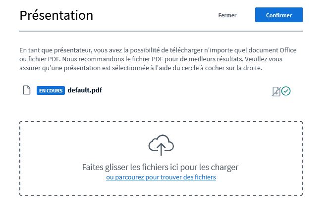 Il suffira ensuite de sélectionner le pdf qui sera au centre de votre appel vidéo, l’uploader sur la page dédiée, puis confirmer.