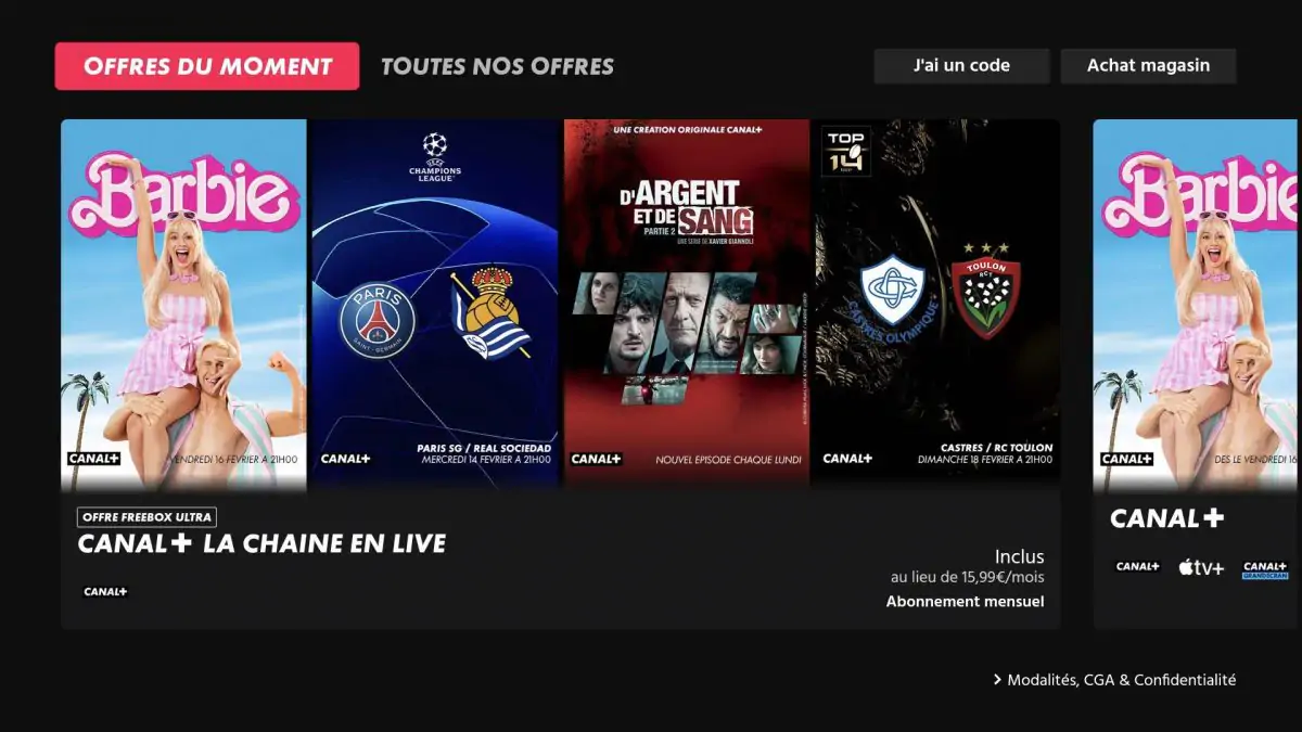 Un tutoriel qui peut s’avérer bien utile si vous souhaitez profiter de Canal+. L’offre Freebox Ultra comprend en effet l’accès à la chaîne Canal+ en Live (sans replay) depuis Oqee, uniquement sur le player Pop pour l’instant, bien qu’une intégration sur Apple TV soit prévue. De quoi profiter des dernières sorties cinéma mais aussi d’émissions produites par la filiale de Vivendi et de diverses compétitions sportives en direct sur le canal 4 d’Oqee.