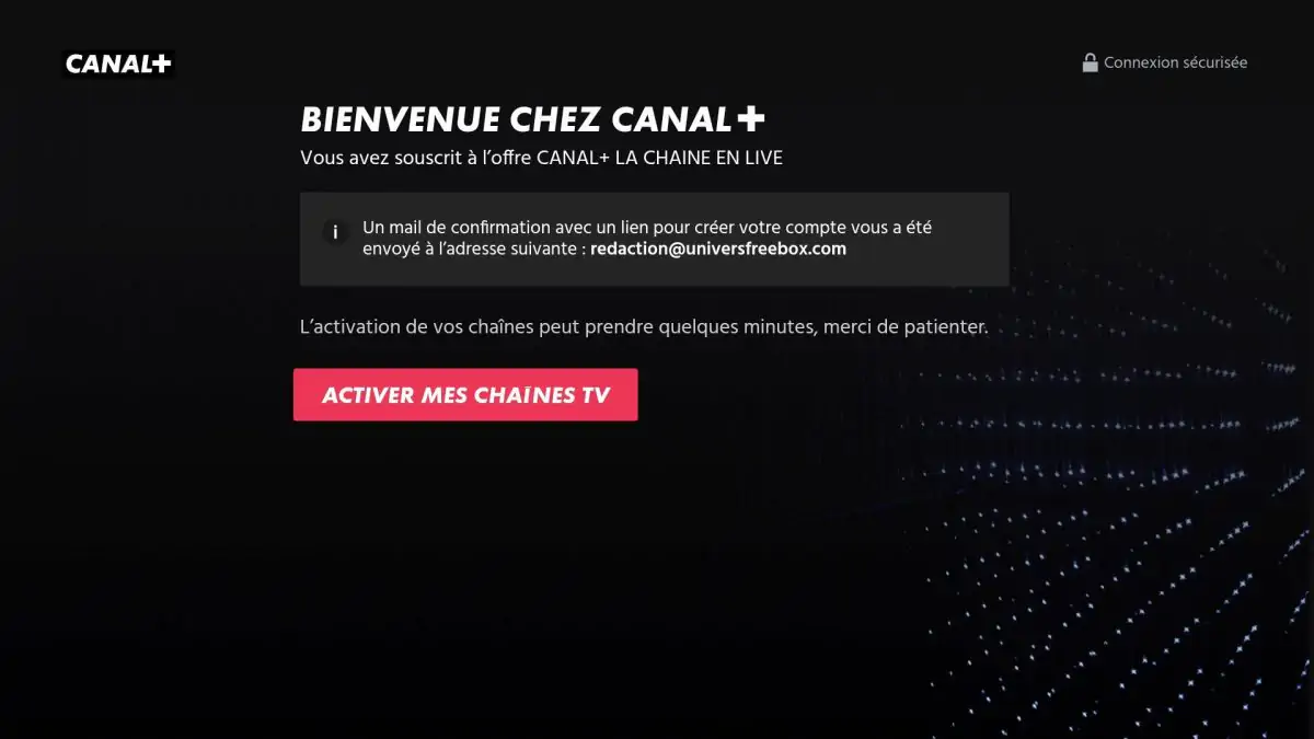 Votre abonnement est ainsi créé, mais selon nos propres constatations, l’activation peut prendre assez longtemps avant d’accéder directement à la chaîne. Si “plusieurs minutes” sont annoncées à l’écran, comptez potentiellement quelques heures.