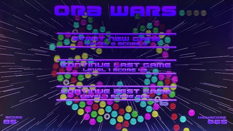 Pour varier les plaisirs, Orb Wars offre deux modes de jeu : le mode classique où il faut repousser l’avancée des billes, avec une fin de partie quand les billes finissent par vous atteindre, et le mode mort subite où il faut également repousser l’avancée des billes, avec un jeu qui se termine au bout de sept lancers infructueux. Par lancer infructueux, comprenez sans décrochage de billes.