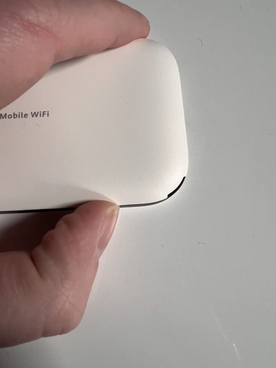 Refermez ensuite le capot puis maintenez le bouton situé sur la tranche de l’appareil jusqu’à ce que vous voyiez les deux voyants s’allumer sur la façade du Pocket WiFi.