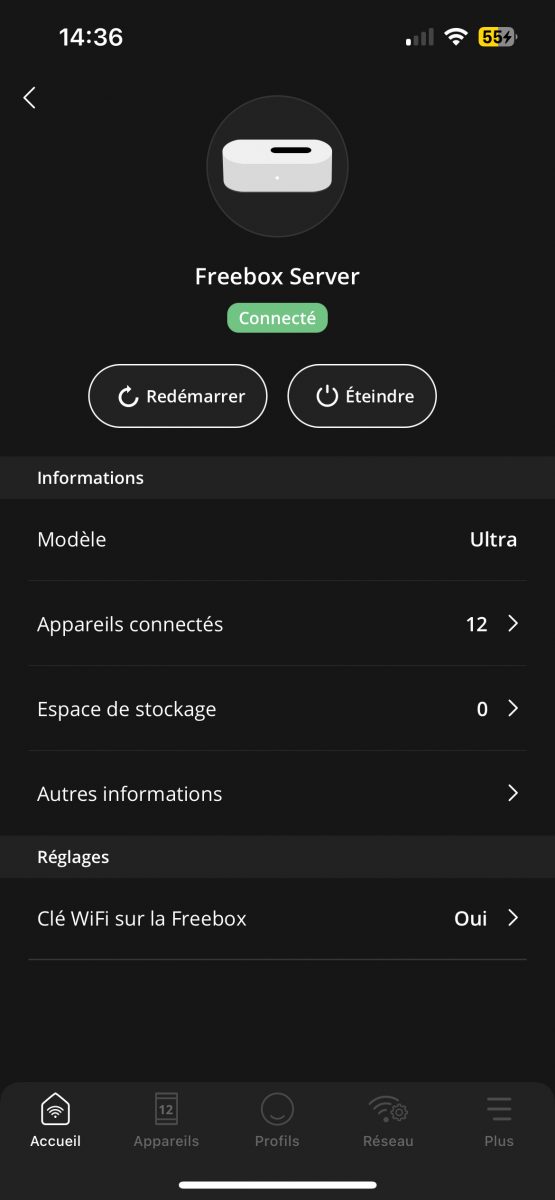 Cependant, si vous avez rangé votre Server dans un endroit peu accessible ou simplement si vous avez oublié de l’éteindre avant de partir, il est possible d’éteindre intégralement sa Freebox directement depuis l’application Freebox Connect, disponible sur Android et iOS.