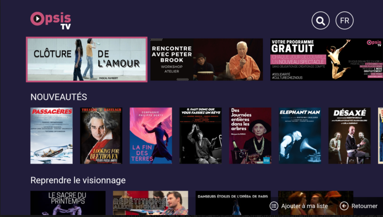 Opsis TV nous annonce que son application est disponible disponible depuis ce jour sur le Store Google Play pour les télévisions et Box qui fonctionnent sous Android TV, en particulier sur la Freebox Mini 4K mais également sur les télévisions et SMART TV connectées, BOX Android TV,BBOX Miami et Ultym, SFR TV connect. Le lancement de cette application s’inscrit é dans la dynamique actuelle de forte croissance de la consommation de SVOD puisque depuis le 16 mars dernier et le début du confinement, Opsis TV a vu croître fortement ses abonnés, en recherche d’une solution alternative à la fermeture des théâtres.