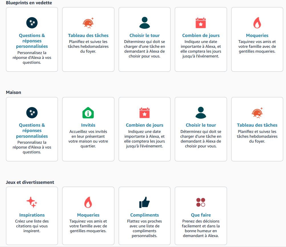 Amazon vient d’annoncer le lancement de sa plateforme Blueprints en France. Elle permet aux utilisateurs d’appareils compatibles avec Alexa (comme la Freebox Delta), de créer leurs propres skills pour l’assistant vocal.