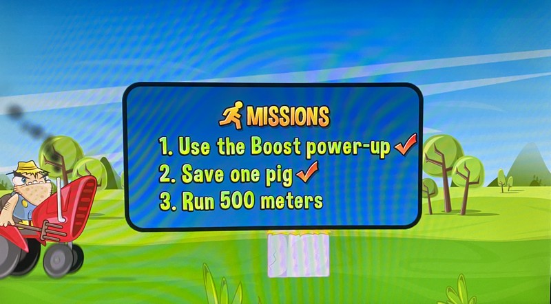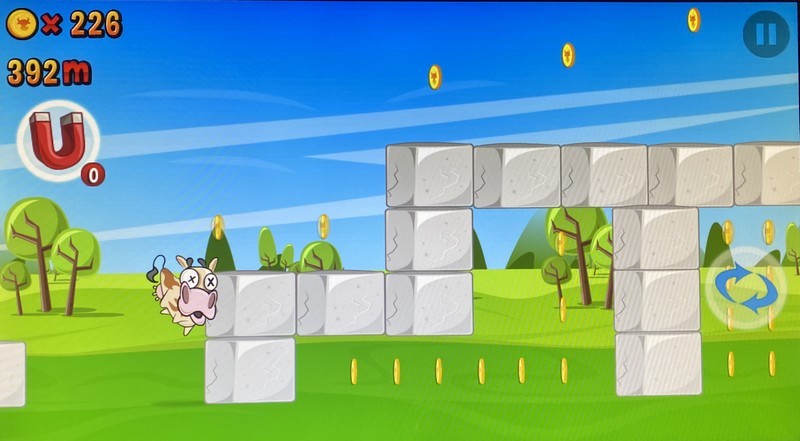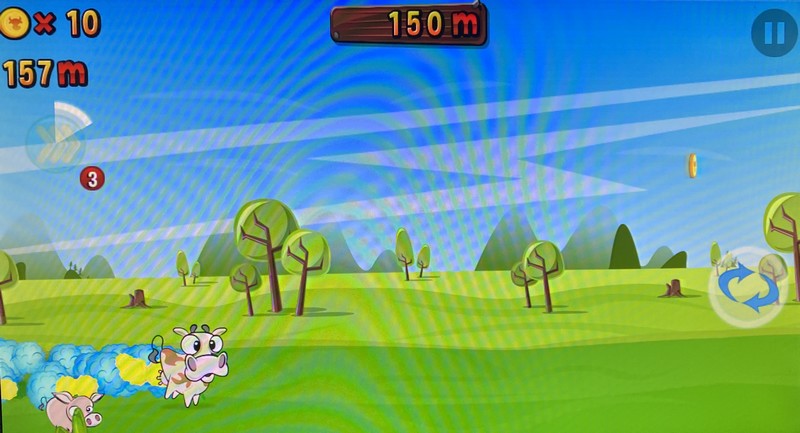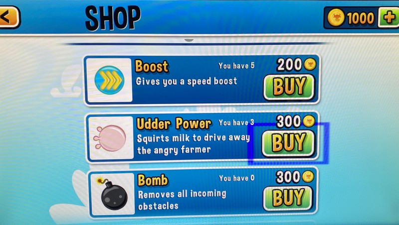 Vous pouvez aussi envoyer des jets de lait pour casser le moteur du fermier à vos trousses, profiter d’un bouclier et de bombes ou encore disposer d’un aimant pour attirer toutes les pièces vers vous.