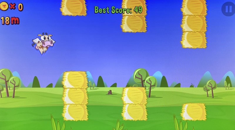 Notez enfin la présence de trois mini-jeux, accessibles depuis l’interface principale, en dessous du bouton Play. Parmi eux : du lancer de fermier après avoir pris un bon élan et mis un bon coup de cornes, de la machine de casino (qui nécessite d’utiliser ses crédits) et un jeu d’adresse où il faut passer entre les structures qui rappelle un certain Flappy Bird.