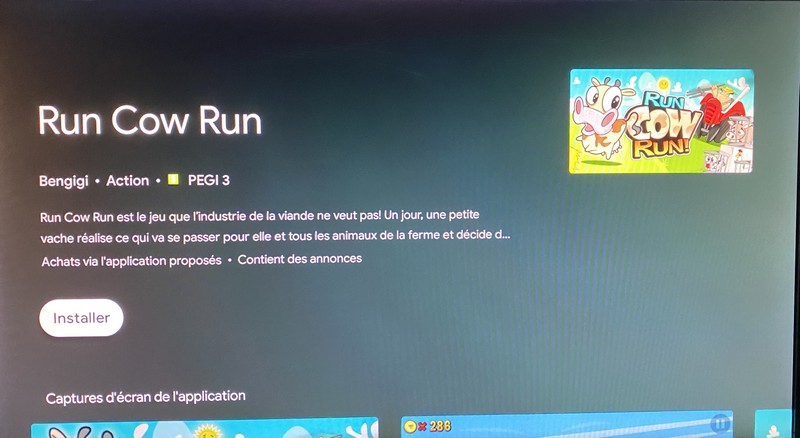 Disponible sur le Play Store de la Freebox mini 4K, Run Cow Run est un jeu de type runner où votre vache tente de s’échapper de l’abattoir pour ne pas finir en steak. À vous ainsi de l’aider à échapper au fermier qui la course avec son tracteur et sa fourche, tout en évitant les obstacles sur son chemin tels que les bottes de foin, rondins de bois ou structures en pierre. Et comme notre vache est sympa, elle tentera d’aider d’autres animaux dans la même galère.