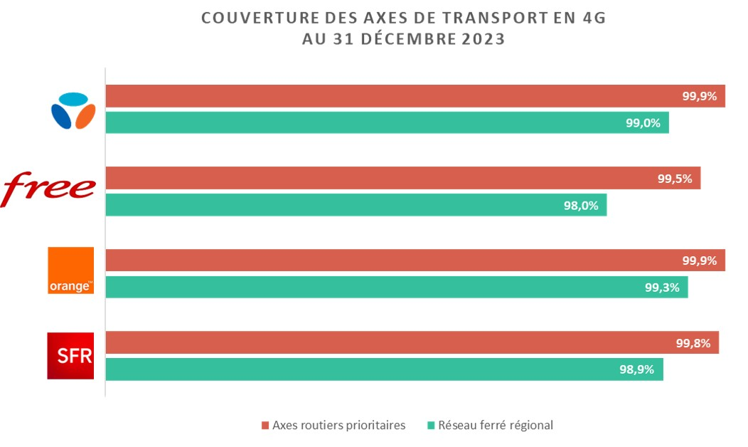 Dans le cadre de cet accord, les opérateurs se voient indiquer des sites ou des zones à couvrir en 4G dans un certain délai depuis 2018, ce qu’on appelle le dispositif de couverture ciblée. Actuellement 2760 sites ont été mis en service et 228 sont en attente de déploiement. Au total, il reste encore 1530 sites à mettre en service dans les 24 prochains mois. À noter par ailleurs, les zones identifiées ainsi que les sites mis en services peuvent être consultés sur “Mon réseau mobile”. L’Arcep indique également le taux de couverture des axes de transports.