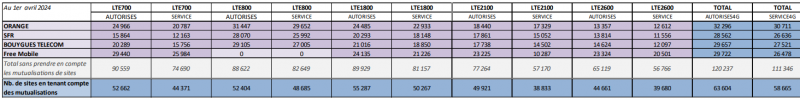 - Bouygues Télécom (27 521 sites, + 522 en mars 2024) ;