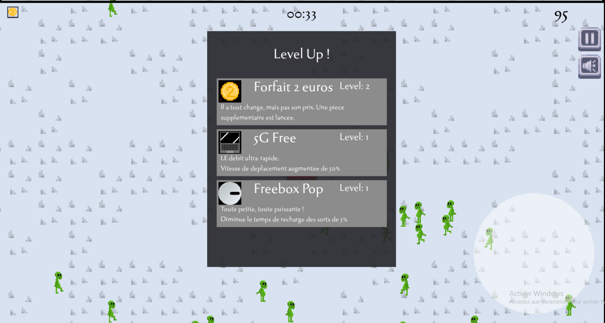 Vous pouvez également découvrir SynthLand, où vous incarnez une Freebox Ultra se déplaçant dans un univers où des squelettes l’attaquent. Survivez aux vagues tout en récupérant le maximum de pièces possibles pour faire grimper votre score.