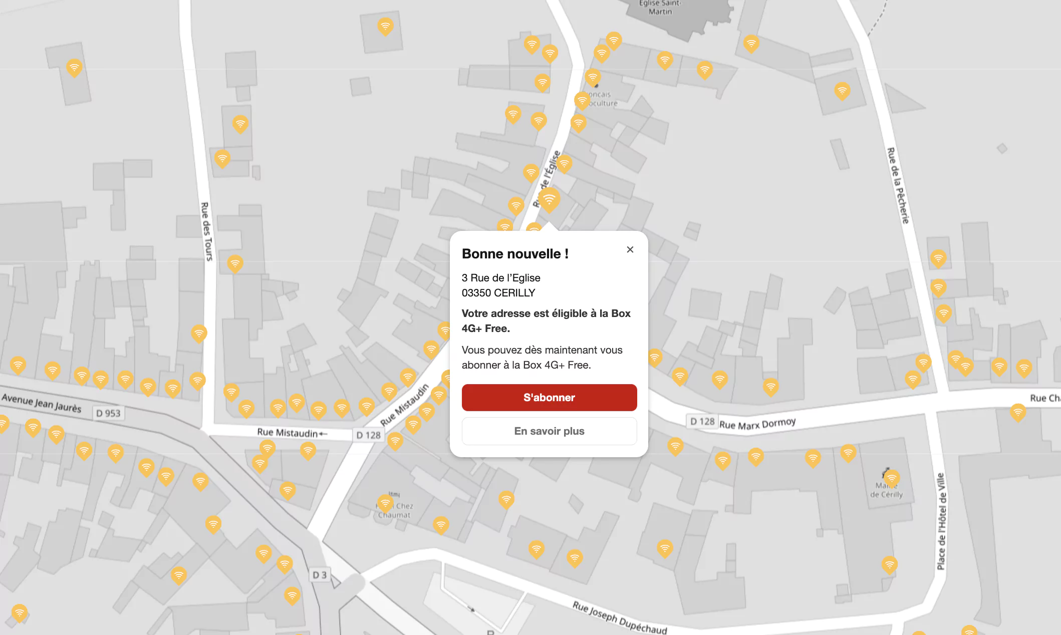 L’offre est donc évidemment davantage dédiée aux zones rurales, mais encore faut-il être éligible. Pour le savoir, Free met à disposition depuis 3 ans sur son site internet une carte dédiée laquelle permet de se rendre compte des zones où une inscription est possible. L’opérateur a d’ailleurs mis à jour les données de celle-ci le 8 avril 2024.
