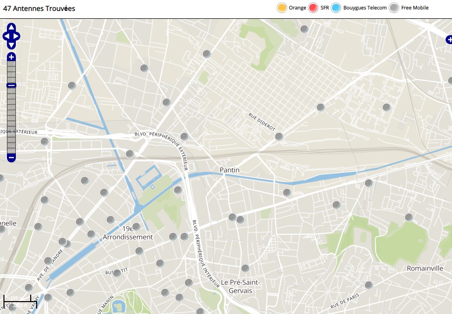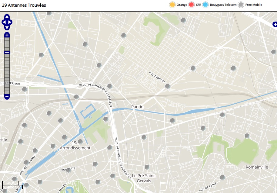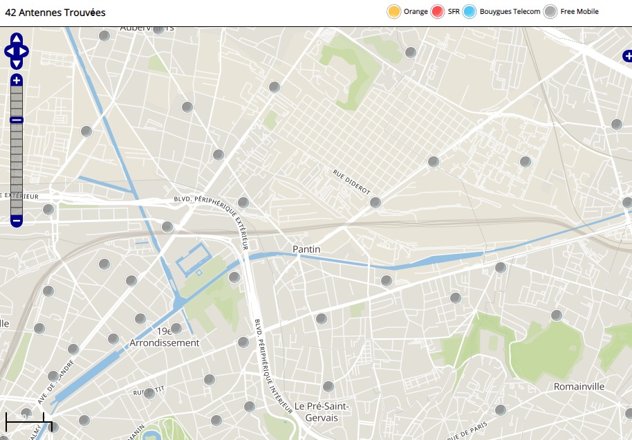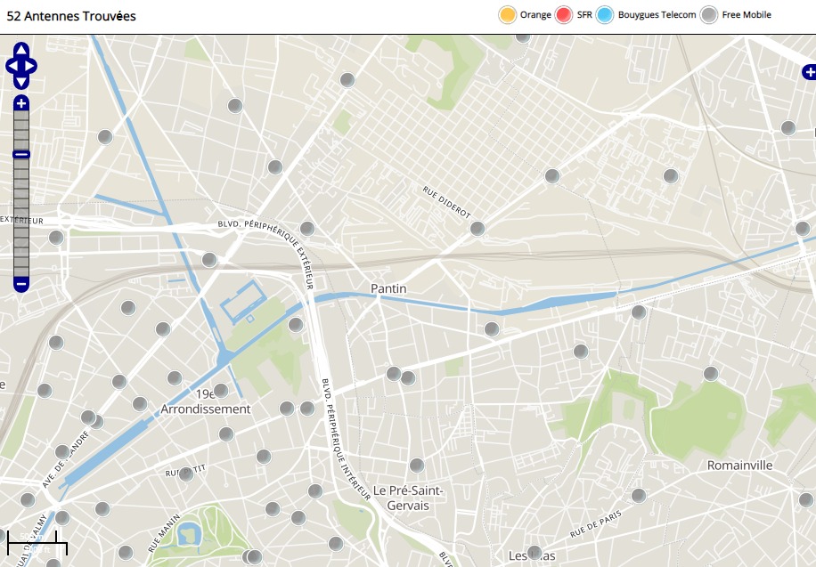 Découvrez la répartition des antennes mobiles Free 3G/4G sur Pantin dans le département de la Seine-Saint-Denis