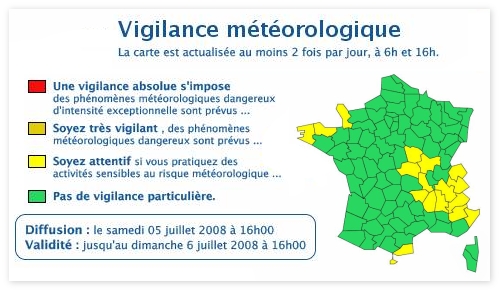 Carte de Vigilance Météo France du 5 juillet 2008 :