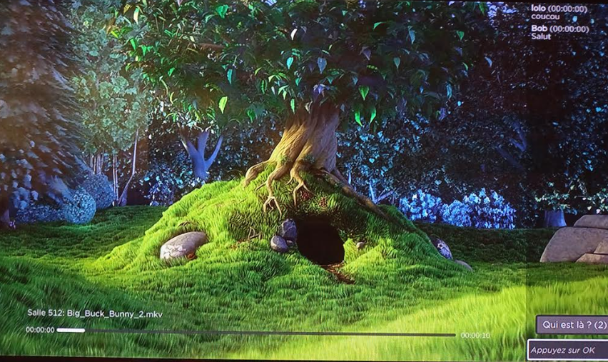 Avec MovieParty vous pouvez soit créer une salle de cinéma, et y inviter vos amis, soit être invités par un de vos amis. Dans le premier cas, il vous sera proposé de choisir une vidéo sur le disque dur de votre Freebox (cela fonctionne également pour vos enregistrements TV) puis un numéro de salle vous sera attribué. Vos amis n’auront plus qu’à rentrer ce numéro de salle pour regarder le film en même temps que vous. Toute personne de la même salle regardera la même vidéo, au même moment, pourra mettre en pause, en lecture ou même chatter.