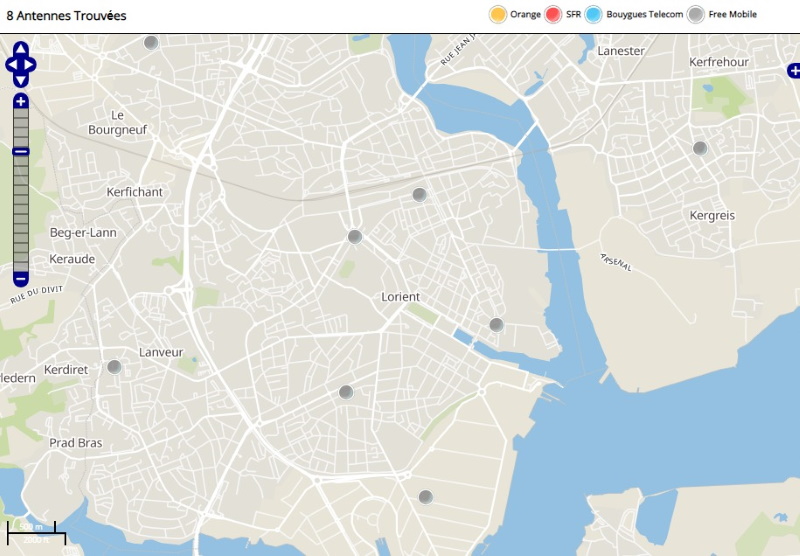 Free a également implanté 8 antennes mobiles 3G dans la ville de Lorient (antennes non-actives incluses).