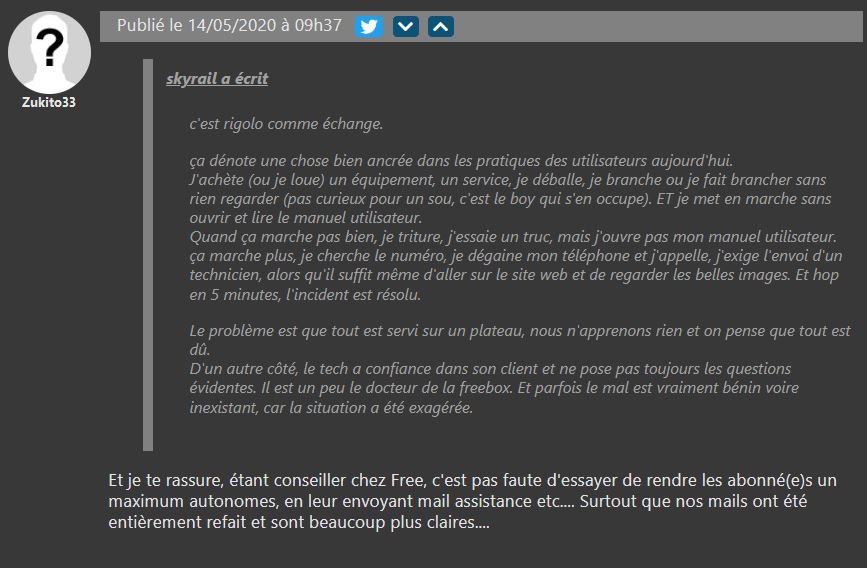 Univers Freebox accueille également des Freenautes pour les aider dans leurs démarches, mais tout ne se passe pas toujours très bien. Dans notre rubrique “Le WTF des Freenautes”, nous vous relatons les expériences les plus cocasses qui nous sont arrivées dans notre lieu d’accueil. Cette fois, c’était avec une dame très remontée que nous avions du batailler pour lui faire comprendre que seul un technicien pouvait l’aider pour au final découvrir qu’il s’agissait d’un simple problème de câble HDMI débranché pendant l’aspirateur. Ce qui inspire quelques commentaires, mais aussi le témoignage d’un conseiller chez Free sous l’article…