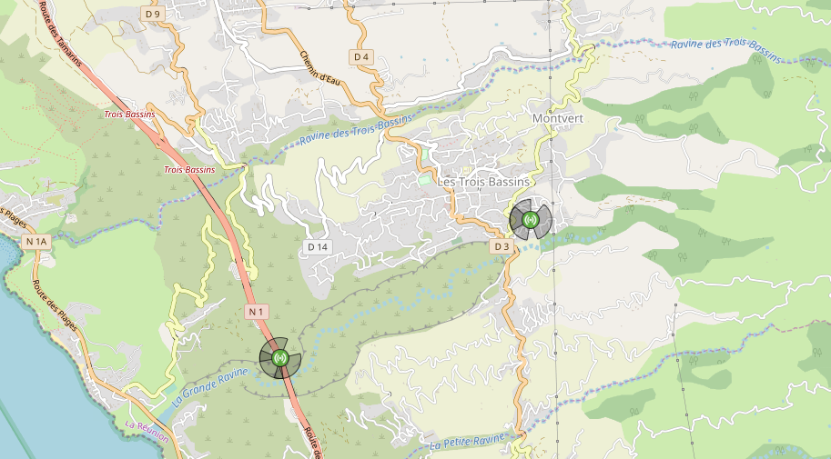 Découvrez la répartition des antennes Free Réunion 3G/4G à Trois Bassins