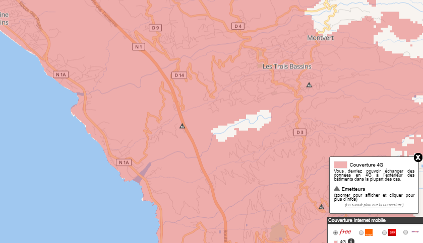 Débit et couverture 4G Free Mobile Réunion : Focus sur Trois Bassins