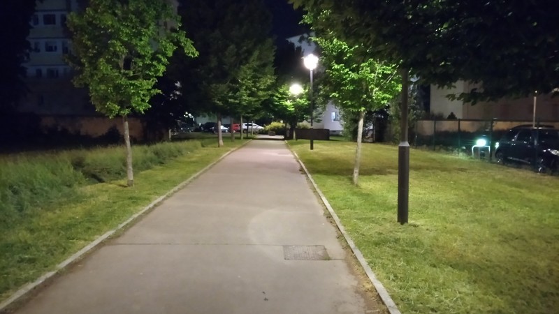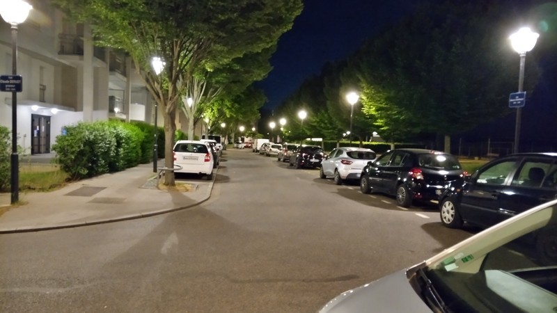 Des photos de nuit, dans une zone résidentielle assez éclairée :