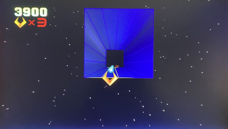 De plus, si vous loupez un ennemi, celui-ci se retrouve sur votre axe de déplacement à essayer de vous attraper. Avec les tirs ennemis, c’est en effet votre deuxième façon de mourir. Il va ainsi falloir continuer à dégommer les autres vaisseaux qui continuent de se rapprocher et de tirer, tout en tenant compte de la nouvelle proximité de cet intrus.