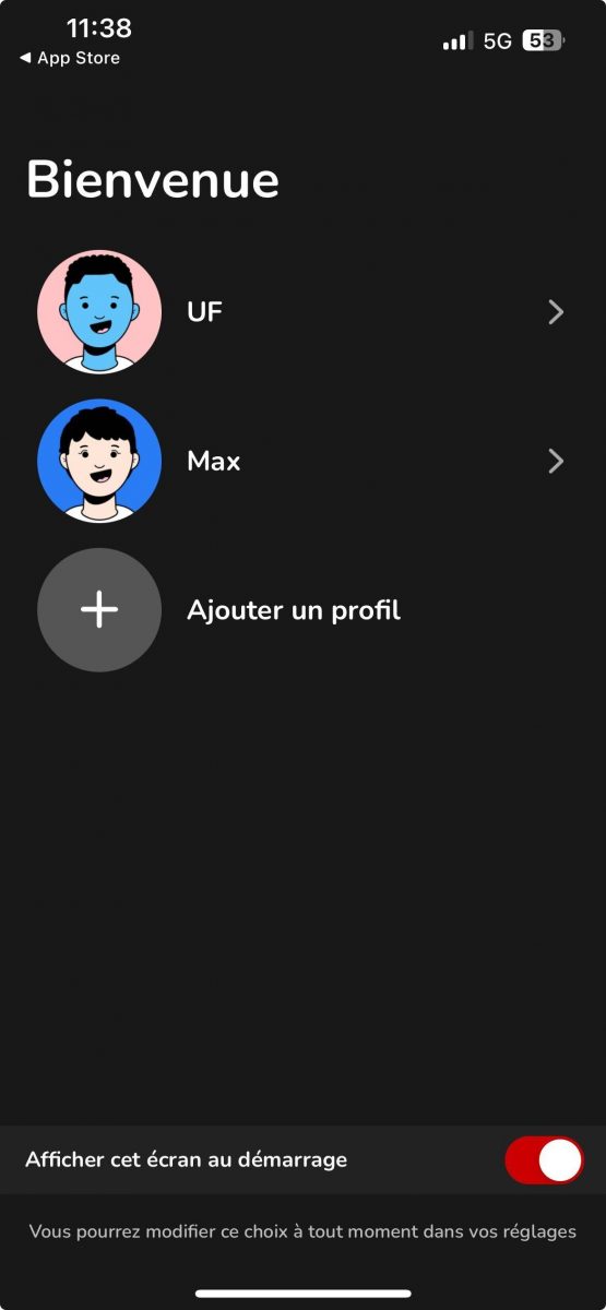 En effet, il est désormais possible de sélectionner un profil au démarrage de l’application pour ne plus afficher tous les profils à chaque ouverture de l’application. Pratique ainsi sur votre iPhone si vous êtes le seul à l’utiliser ou même sur l’Apple TV dans votre chambre par exemple. Si vous voulez vous débarasser de la proposition, il suffit ainsi de décocher l’option “Afficher cet écran au démarrage“. Il est possible à tout moment depuis les réglages de faire en sorte que l’écran vous soit à nouveau proposé à chaque ouverture.