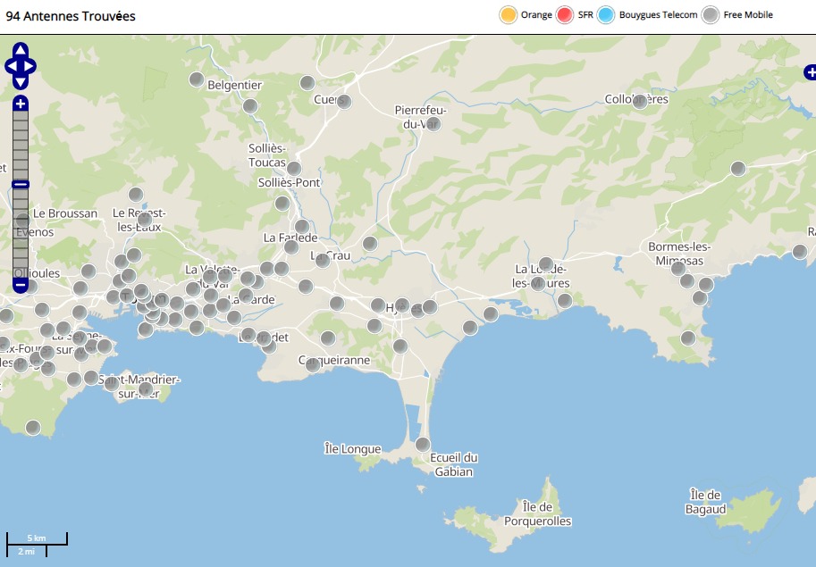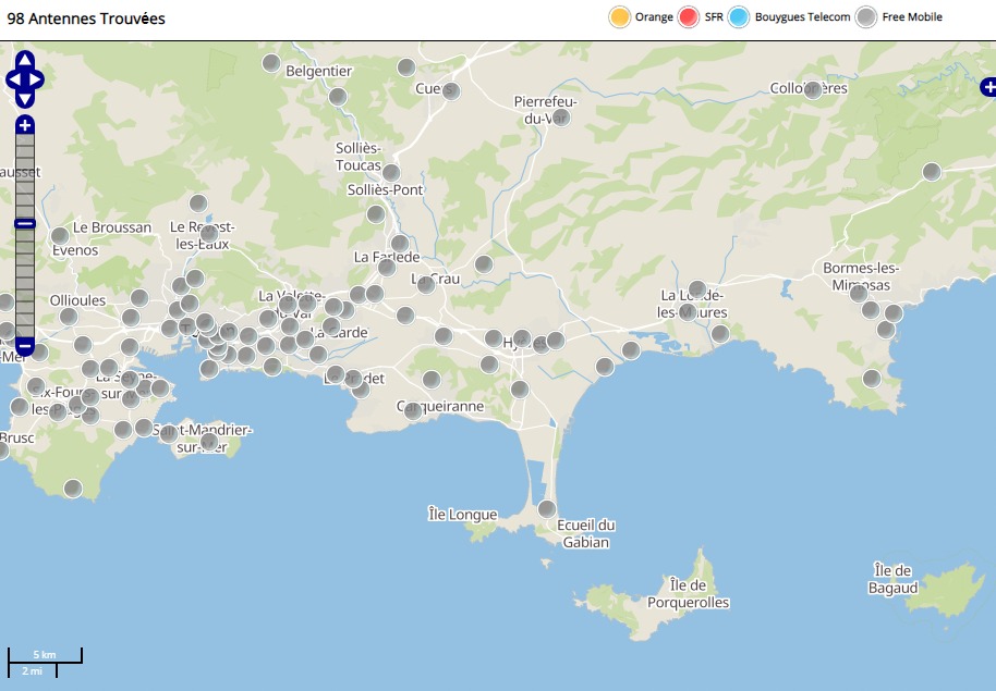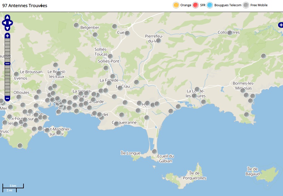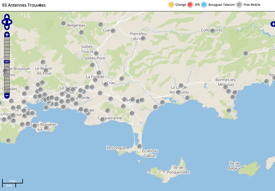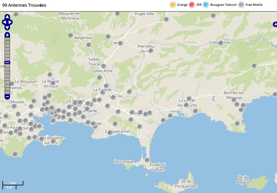 Découvrez la répartition des antennes mobiles Free 3G/4G sur Hyères dans le Var