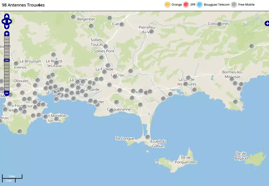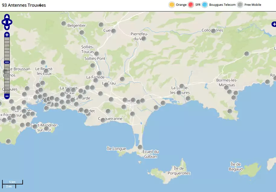 Free a implanté 9 antennes mobiles 4G dans la ville de Hyères (antennes non-actives incluses).
