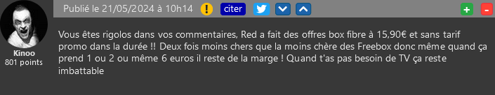Alors qu’une augmentation de 6€ a déjà été appliquée en début d’année pour certaines offres Red Box, la marque low-price de SFR recommence. Cette fois, la hausse est bien moins importante, mais ne peut pas être évitée sauf en résiliant et elle est encore une fois justifiée par “un contexte persistant d’inflation, marqué par la hausse généralisée des coûts constitutifs du prix de votre service (composants électroniques, matières premières, logistique…)“. Une hausse de 0.99€/mois, mais une pratique toujours aussi critiquée globalement, même si certains considèrent qu’au vu de l’offre de base peu onéreuse, ce n’est pas si grave. A noter, si les offres à 15.99€ de Red ont bien existé, aujourd’hui la proposition de l’opérateur tourne autour de 25.99€/mois.