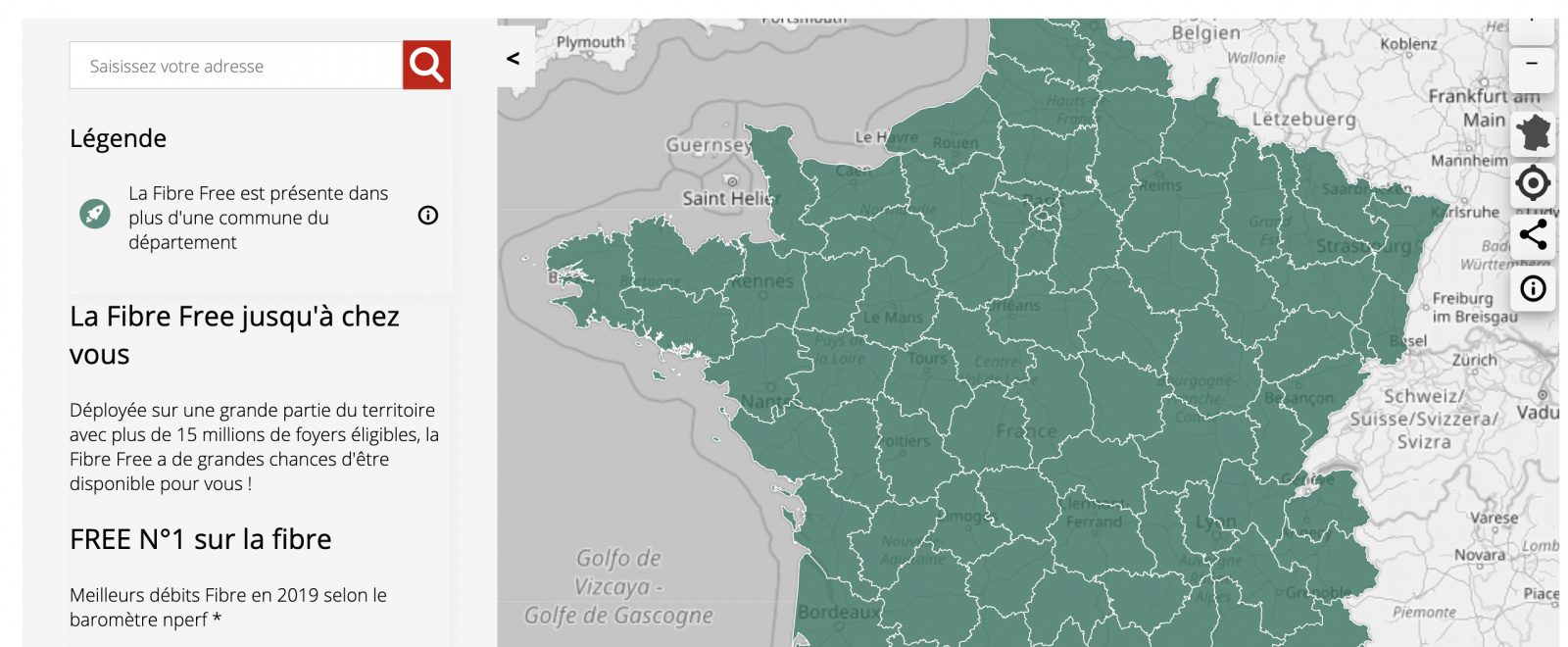 Idéale pour les abonnés ADSL désireux de passer à la fibre et aux futurs clients de Free, la nouvelle carte interactive de l’opérateur a reçu une nouvelle mise à jour, une occasion de connaître son éventuelle éligibilité à la fibre si ce n’était pas le cas jusqu’à présent. Pour ce faire, rien de plus simple, il suffit de saisir son adresse postale, pour connaître l’avancement du déploiement FTTH dans votre zone d’habitation et votre domicile.