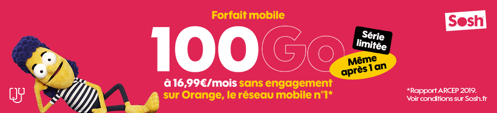Sosh lance une promo à prix très compétitif, avec 100 Go de data pour 16.99€/mois et sans prix qui change au bout d’un an.