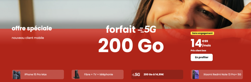 En pleine crise, SFR tente relancer ses recrutements avec une nouvelle offre spéciale qui a tout pour plaire : 200 Go, la 5G, une application TV avec plus de 100 chaînes, le tout à 19,99€/mois ou 14,99€/mois pour les clients box.