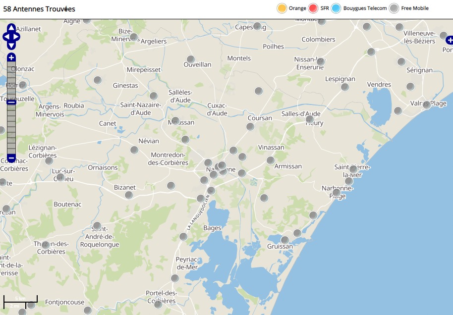 Découvrez la répartition des antennes mobiles Free 3G/4G sur Narbonne dans l’Aude