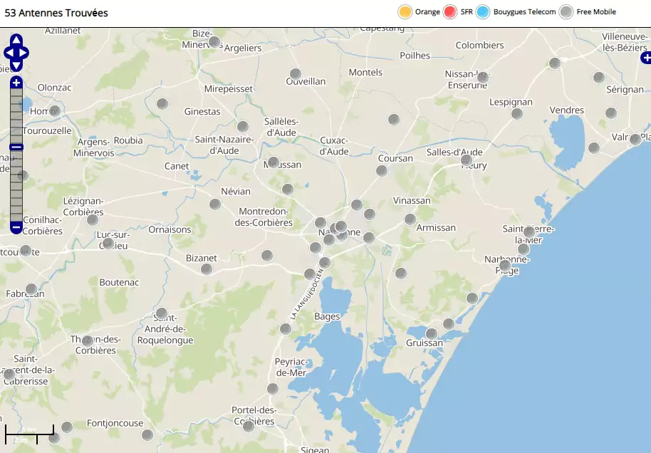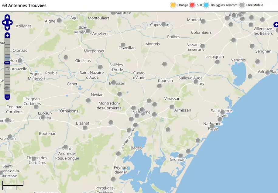 Free a également implanté 14 antennes mobiles 3G dans la ville de Narbonne (antennes non-actives incluses).