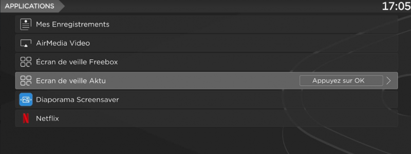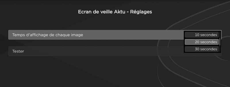 L’année dernière, Free intégrait une nouvelle fonction sur le Player de la Freebox Révolution, et sur le Player de la Freebox Delta-Devialet, à savoir un écran de veille particulièrement évolué. L’opérateur l’a mis à jour sur le Player Devialet de la Freebox Delta, avec un nouveau choix. Jusqu’à présent, il y avait le choix entre la diffusion d’images aléatoires via l’application Screensaver, ou un écran de veille qui vous permet d’afficher le message que vous souhaitez ainsi que l’heure. désormais, il est proposé “Ecran de veille Aktu”, qui diffuse les contenus de l’Aktu Free et en particulier d’OQee Ciné, durant 10, 20 ou 30 secondes.