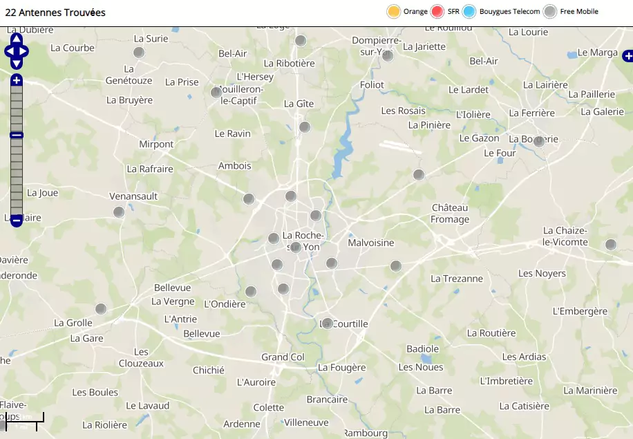 Free a implanté 13 antennes mobiles 4G dans la ville de La Roche-sur-Yon (antennes non-actives incluses).