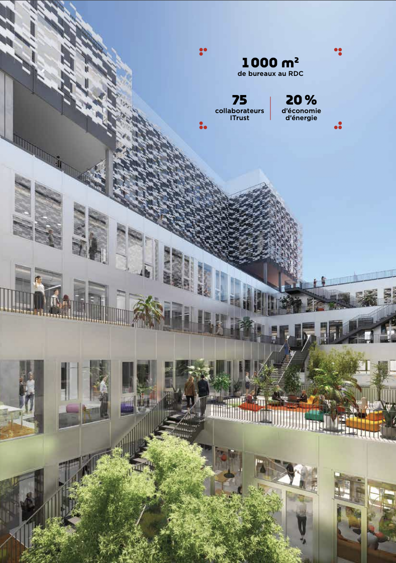 Au sein du quartier Enova, un bâtiment de 20 000 m2 très écologique (certifié E2/C1 (certification E+/C), composé d’espaces de bureaux et de coworking sur 6 niveaux, est dédié exclusivement aux entreprises et aux start-ups. Baptisé DATA Valley, il accueille les bureaux d’ITrust, lesquels sont répartis au rez-de-chaussée sur 1 000 m 2.