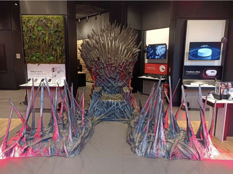 Pendant une semaine, la boutique parisienne de Free expose de manière éphémère l’unique trône de House of the Dragon. Ce décor emblématique offre aux visiteurs l’opportunité de s’immerger dans l’atmosphère épique et royale de la série. “Venez nombreux, prenez-vous en photo sur le trône et découvrez les nouvelles offres exclusives de la plateforme Max”, invite Free sur son portail.