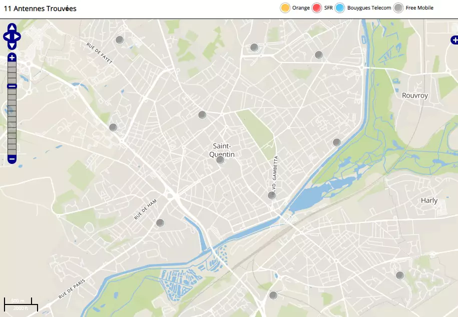 Free a implanté 10 antennes mobiles 4G dans la ville de Saint-Quentin (antennes non-actives incluses).